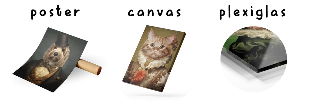 This collection offers a wide palette of possibilities to immortalize your love for your pet. Choose from watercolor, realistic, cartoon, drawn styles, impasto, and floral portraits for a personal artwork that speaks to the heart.
